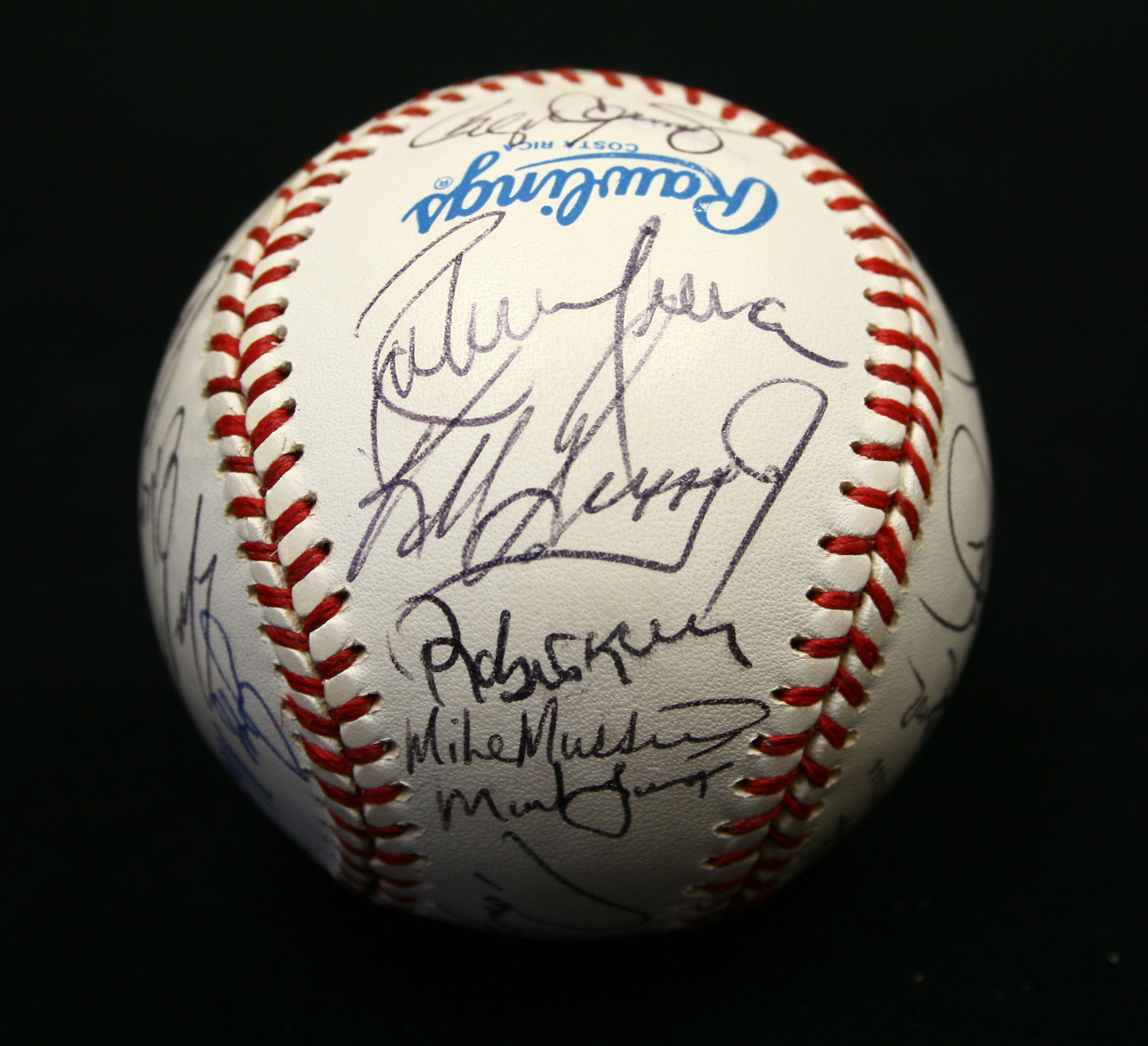 Description:1992 American League All-Star team-signed baseball. B.Brown AL ball signed by (28) members of the team including Roger Clemens, Ken Griffey Jr., Cal Ripken Jr., Joe Carter, Paul Molitor, Roberto Alomar, Dennis Eckersley, Kirby Puckett, Mark McGwire, Wade Boggs, Mike Mussina, and others. Signatures rate 9/10 out of 10: NM