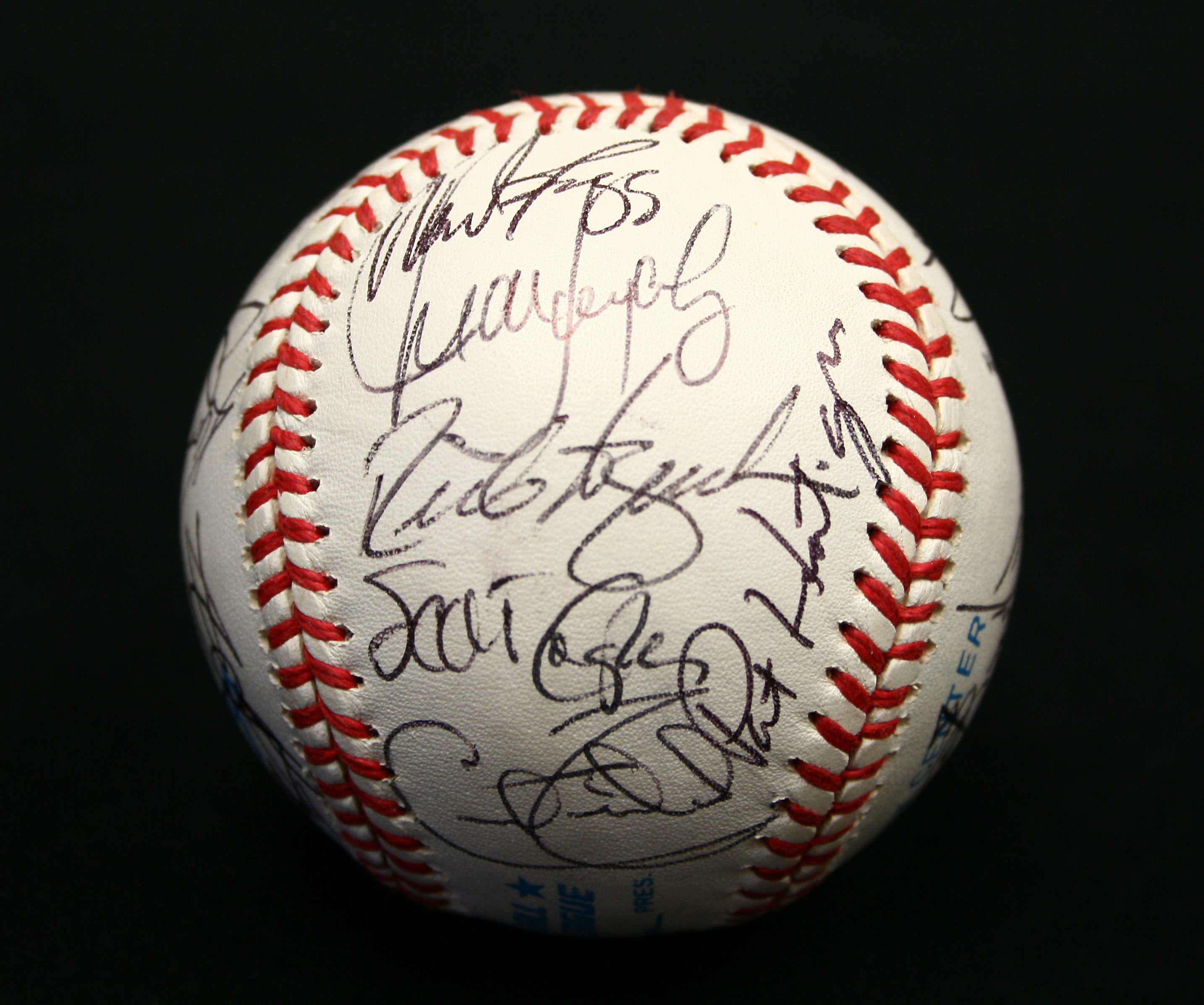 Description:1993 American League All-Star team-signed baseball. B.Brown AL ball signed by (26) members of the team including Ken Griffey Jr., Frank Thomas, Kirby Puckett, Cal Ripken Jr., Wade Boggs, Joe Carter, Mike Mussina, Jimmy Key, Albert Belle, Cecil Fielder, and others. Signatures rate 8/9 to 10 out of 10: NM