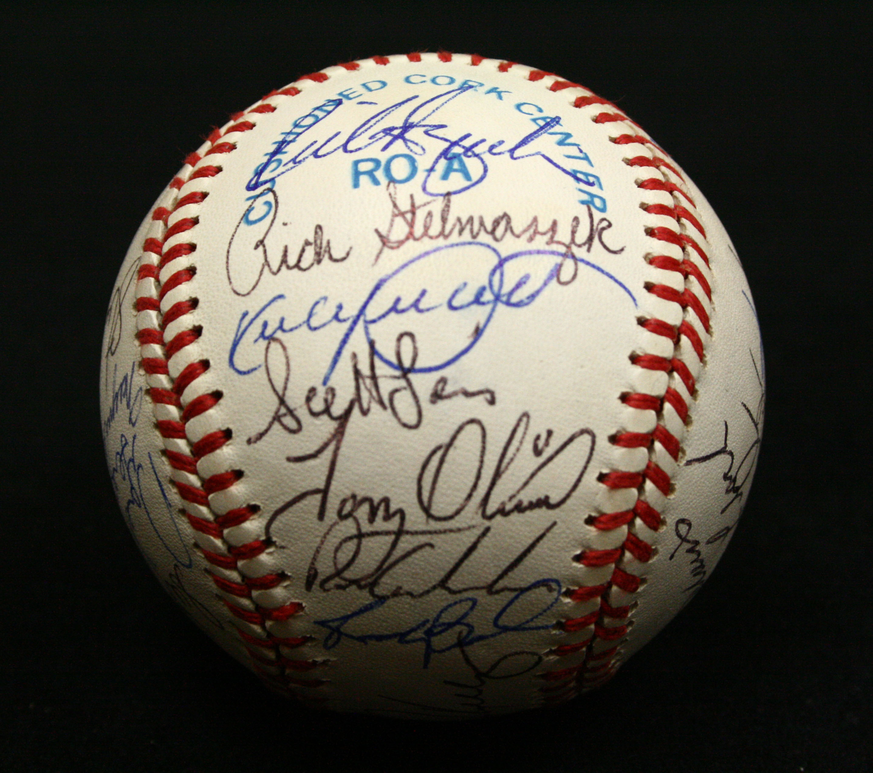 Description:1991 Minnesota Twins World Champions team-signed baseball. B.Brown AL ball signed by (29) members of the champion team including Kirby Puckett, Chuck Knoblauch, Kent Hrbek, Tom Kelly, Jack Morris, Chili Davis, Shane Mack, Al Newman, Tony Oliva, Rick Aguilera, Scott Leius, Randy Bush, and others. Signatures rate 8/9 to 10 out of 10: NM