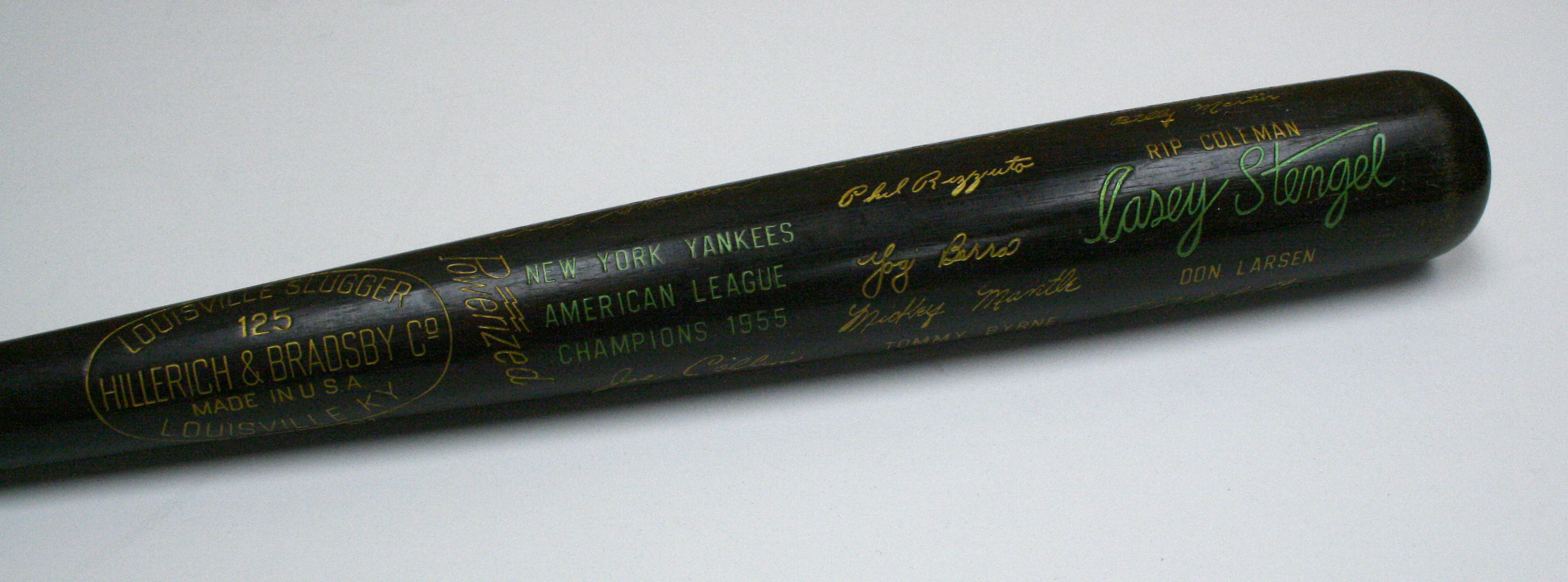 1955 New York Yankees American League Champions Louisville Slugger black bat. 35" bat showing light surface wear: EX-EX/MT