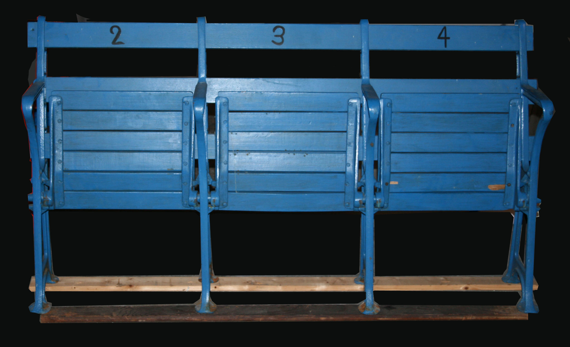 Description:Set of (3) Yankee Stadium seats. Original connected trio of seats originally used in Yankee Stadium. The metal sides and seat bottoms are original. The seat backings have been replaced. All of the pieces have been repainted. Seats show minor surface wear: EX