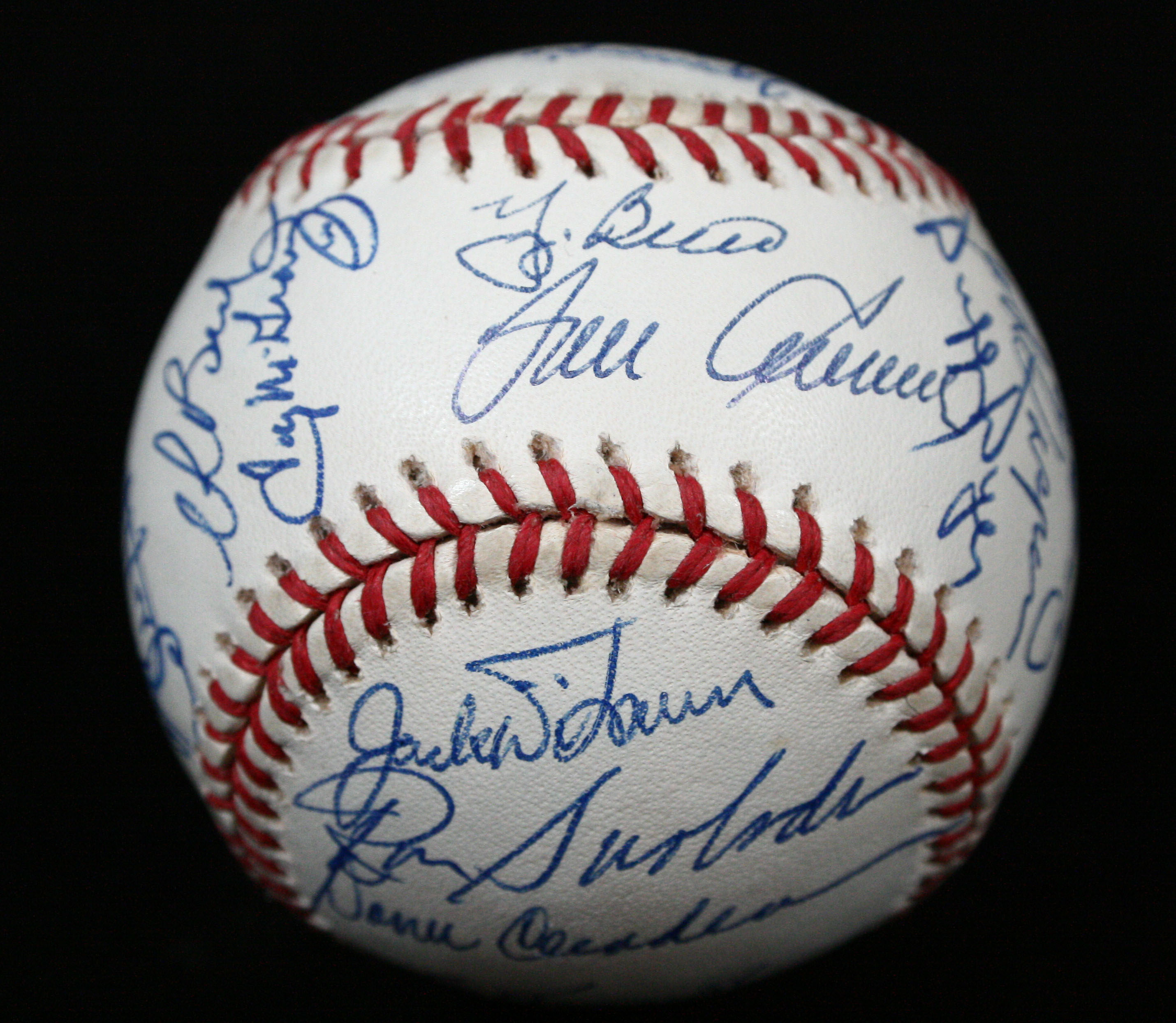 Description:1969 New York Mets reunion team-signed baseball. L.Coleman NL ball signed by (25) incl. Yogi Berra, Tom Seaver, Tug McGraw, Tommie Agee, and others. Signatures rate 8 to 9 out of 10: EX-MT