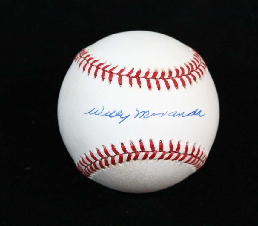 Description:Willy Miranda single-signed G.Budig AL baseball. Miranda signed the sweet spot in blue ink. Signature rates 10 out of 10. Incl. COA from PSA/DNA (serial #ed sticker is affixed): EX/MT