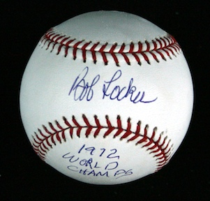 Description:Bob Locker single-signed and inscribed B.Selig MLB baseball. Locker signed the sweet spot in blue ink and added "1972 World Champs" inscription. Signature rates 8 out of 10. Incl. COA from PSA/DNA (serial #ed sticker is affixed): EX/MT-NM