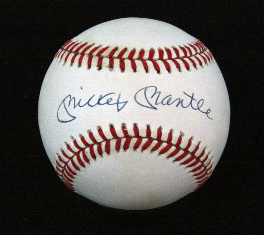 Description:Mickey Mantle single-signed baseball - B.Brown American League ball signed on the sweetspot in blue ink. Signature rates 8 out of 10. Ball exhibits very minor scattered toning: EX/MT
