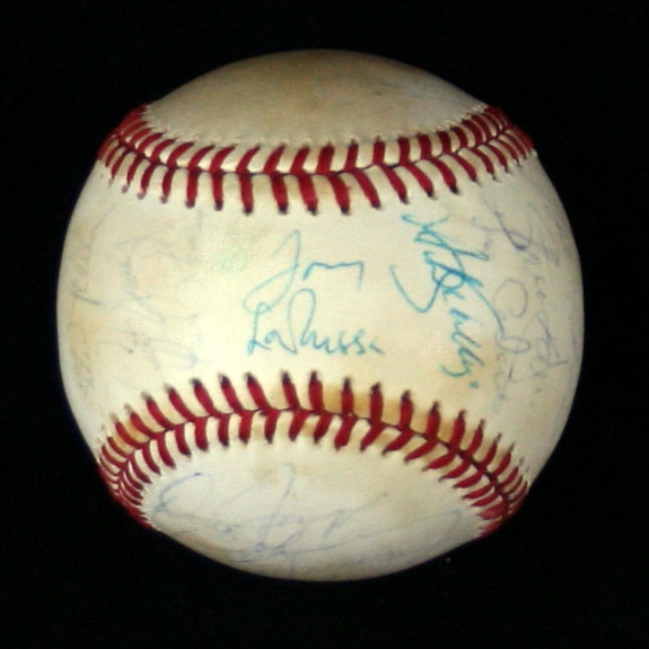 Description:UPDATED PHOTO:1988 American League Champion Oakland Athletics team-signed baseball with Mark McGwire (PSA/DNA) (EX) Rawlings B.Brown Official American League baseball signed by (27) including Mark McGwire, Tony LaRussa, Jose Conseco, Bob Welch, Dennis Eckersley, Walt Weiss, and others. Ink signatures rate 5 to 8 out of 10 (avg 6). Ball exhibits scattered toning. Includes full LOA from PSA/DNA: EX