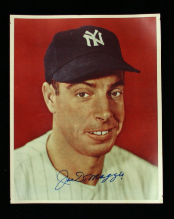 Joe DiMaggio signed 8"x10" color photo (EX). DiMaggio signed the photo in blue sharpie. Signature rates 9 out of 10: EX