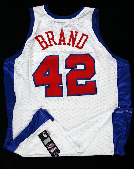 Description:2006-2007 Elton Brand professional model Los Angeles Clippers jersey (EX-EX/MT). Mesh jersey with "Clippers" across front, "BRAND" across back, and #42 on the front and back. Retains its original Adidas size 50, 4"X-Length Body, and 2006-2007 tagging on front lower left. Jersey exhibits light usage and wash wear: EX-EX/MT