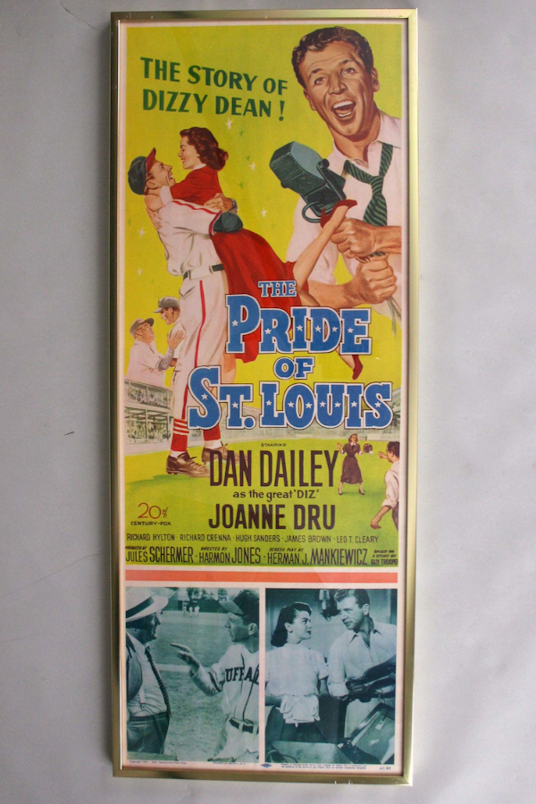 Description:1951 "The Pride of St. Louis" framed movie poster (VG/EX). Original 14"x36" one-sheet color movie poster with great display qualities. Marked "Copyright 1951 - 20th Century-Fox Film Corp." at the bottom. Exhibits original fold lines and a few mior creases. Housed in a 14.5"x36.5" frame. Displays very well overall: VG/EX