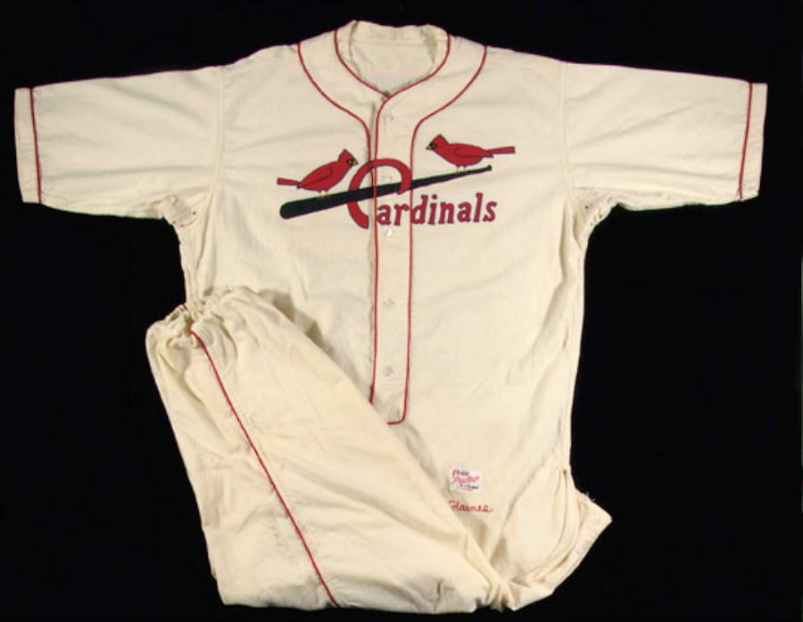 Description:Jesse Haines St. Louis Cardinals Old Timers uniform (EX). Original flannel jersey and pants were issued to HOF'er Jesse Haines for being named to the All-Time Cardinals team at the Baseball Writers Dinner held in St. Louis in 1958. The jersey retains its original team name on the front with #16 on the reverse. Rawlings tag is affixed to the tail front and "Haines" is chain stitched in red. Matching pants retain "Haines 1926" red chain stitch on the interior in reference to the 1926 Cardinals championship team. Overall condition is very fine with appropriate light to moderate use. Includes LOA from Hunt Auctions: EX