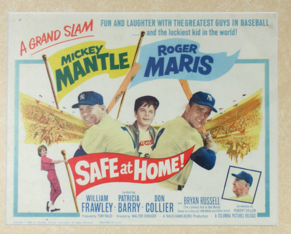 Description:1962 Mickey Mantle and Roger Maris framed "Safe at Home" movie lobby card (EX). 11"x14" original lobby card depicting Mantle and Maris. Displays as EX with minimal visible wear. Matted and framed (16"x19"): EX