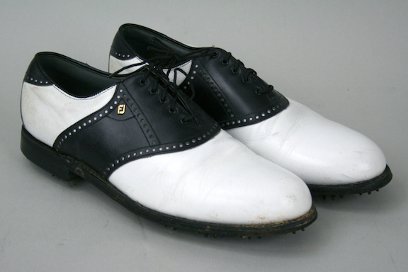 Description:Pair of Michael Jordan personal Footjoy golf shoes (EX). Two-tone white and black size 13 Footjoy Premiere Classic Dry golf shoes. Shoes exhibit moderate usage wear including light surface soiling and grass and dirt remnants in the cleats The offered shoes originated from the personal collection of Michael Jordan and include COA from Upper Deck Authenticated: EX