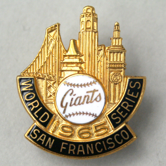 Description:1965 San Francisco Giants Phantom World Series press pin (EX/MT-NM). Original pin marked Balfour on the back. Includes a screw-on style clasp: EX/MT-NM