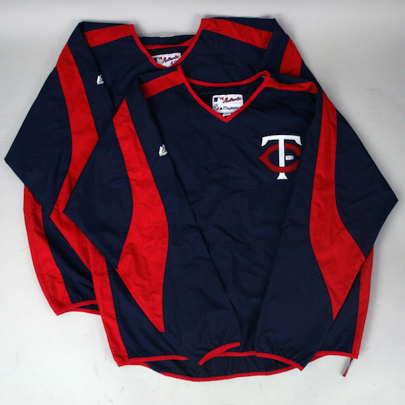 Description:2007 Justin Morneau and Torii Hunter team-issued Minnesota Twins wind breaker jackets MLB Authenticated (EX)-EX/MT). Includes a Majestic size XL jacket with "33" written in marker on the tag (attributed to Justin Morneau) and a Majestic size XXL jacket with "48" written in marker on the tag (attributed by Torii Hunter). Each jacket has a MLB Authenticated serial #ed hologram affixed to it (serial #s BB 625769 and BB 625768). Jackets exhibit light usage wear: EX-EX/MT