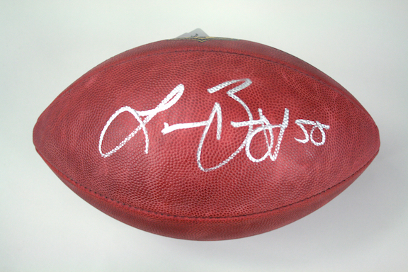 Description:Lance Briggs signed R.Goodell The Duke NFL football PSA/DNA. (NM) Wilson R.Goodell The Duke NFL football signed by Briggs in silver marker. Signature rates 9 out of 10. Comes with COA from PSA/DNA (serial #ed sticker is affixed): NM