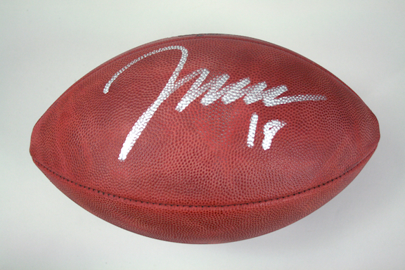 Description:Jeremy Maclin signed R.Goodell The Duke NFL football PSA/DNA. (NM) Wilson R.Goodell The Duke NFL football signed by Maclin in silver marker with "18" inscription. Signature rates 9 out of 10. Comes with COA from PSA/DNA (serial #ed sticker is affixed): NM