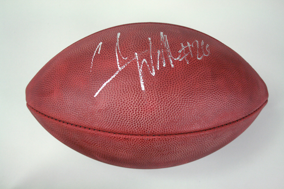 Description:Chris "Beanie" Wells signed and inscribed R.Goodell The Duke NFL football PSA/DNA. (NM) Wilson R.Goodell The Duke NFL football signed by Wells in silver marker with "#26" inscription. Signature rates 8 out of 10. Comes with COA from PSA/DNA (serial #ed sticker is affixed): NM