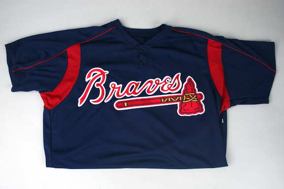 Description:Jeff Francoeur professional model Atlanta Braves pre-game batting practice jersey, c.2006. (EX) Majestic size 50, 2-button neck jersey with "BRAVES" and tomahawk sewn across front. Reverse features sewn number "7", along with "FRANCOEUR" nameplate. Interior wash tag features pro-code 0065. Exhibits light usage wear: EX