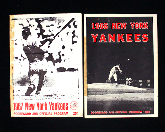 Description:Lot of assorted vintage baseball memorabilia from 1955-1968. (VG-EX) Incl. 7"x9" 1955 International News Photos press photograph depicting Eddie Mathews, Ernie Banks, and Del Crandall (VG/EX); 1955 Sports Review Baseball Issue (VG/EX-EX); 1958 Street & Smith's Baseball Yearbook (EX); August 16th 1967 New York Yankees program for game vs Baltimore Orioles (VG, unscored); and August 2nd 1968 Yankees program for game vs Orioles (VG/EX, neatly scored in pencil).