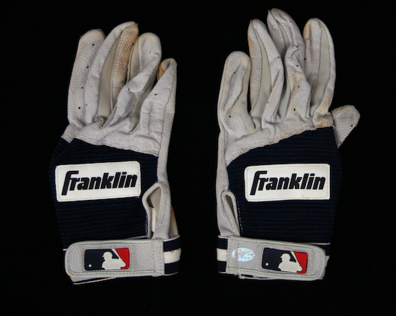 Description:Pair of Alex Rodriguez game used batting gloves, c.2004 AROD Authenticated. (EX) Pair of Franklin batting gloves with MLB logo on wrist straps. Gloves exhibit moderate to heavy usage wear, with dirt stains present. Includes COA from AROD, with matching serial #ed hologram sticker affixed: EX