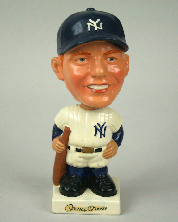 Description:Vintage Mickey Mantle bobble head c.1961-63 (EX/MT). White square based nodder exhibiting great original color and surface gloss. Exhibits very minimal surface wear with minor spotting on top of the shoulders. Nice high grade Mantle nodder: EX/MT