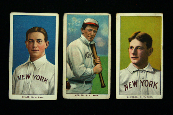 Description:Jack Chesbro, Willie Keeler, and Hal Chace T206 Baseball cards. (GD-VG) Incl. Jack Chesbro with Piedmont back (VG), Willie Keeler (batting) with Piedmont back (GD, with stamping on back), and Hal Chase (portrait, blue background) with Piedmont back (VG). Range: GD-VG