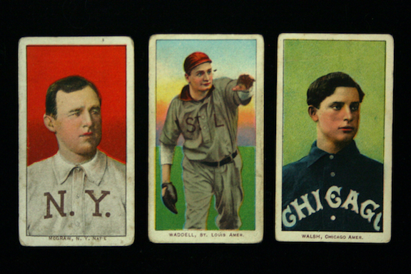 Description:John McGraw, Rube Waddell, and Ed Walsh T206 Baseball cards. (PR/FR-VG) Incl. John McGraw (portrait, no cap) with Sweet Caporal back (VG appearance, but PR/FR due to small ink notation on back); Rube Waddell (throwing) with Piedmont back (G/VG-VG), and Ed Walsh with Piedmont back (VG). Range: PR/FR-VG