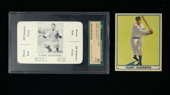 1936 Gabby Hartnett S&S Game Card, and 1941 Play Ball Hank Greenberg baseball cards. (VG-EX/NM) Incl. 1936 Gabby Hartnett S&S Game Card graded SGC 80 (EX/NM); and 1941 Play Ball #18 Hank Greenberg (VG-VG/EX). Range: VG-EX/NM