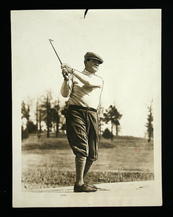 Description:Original 1923 Babe Ruth golfing press photo (VG-VG/EX). 6"x8" photo depicting Ruth taking a golf swing. The back is stamped "Kadel & Herbert" and dated March 1, 1923. Displays as EX, but has a very small notch out of the top: VG-VG/EX