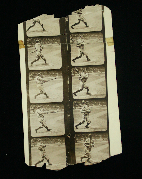 Description:Vintage Babe Ruth batting film strip press photo c.1920s-30s (GD/VG). 6"x9.5" photo depicting a film strip of Babe Ruth swinging. The back is stamped Pacific & Atlantic Photos Inc. The top and bottom edges are uneven and exhibit creasing. A 2" section of the top has been reattached with clear tape on the back: GD/VG