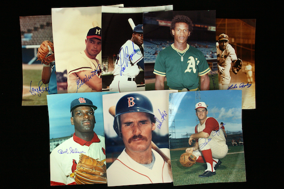 Description:Lot of (27) signed 8"x10" baseball player photos including (11) HOFers (EX/MT-MT). Includes: Pete Rose, Hoyt Wilhelm, Monte Irvin, (2) Gary Carter, Wade Boggs, Bob Gibson, Rickey Henderson, Lou Brock, Eddie Mathews, George Brett, Luke Appling, Jose Canseco, Harvey Haddix, Roy Sievers, David Cone, Dwight Gooden, Bobby Bonilla, Dick Groat, Dale Murphy, Charlie Keller, Dennis Rasmussen, John Marzano, John Candalaria, Dan Pasqua, Mike Pagliarulo, and Lee Elia. All are signed in sharpie and rate 8-10 out of 10: EX/MT-MT
