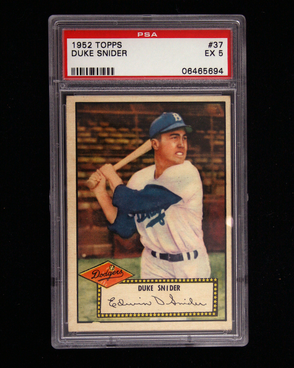 1952 Topps #37 Duke Snider (PSA 5 EX). Red back. Exhibits very light corner wear. Clean front and back. Graded PSA 5: EX