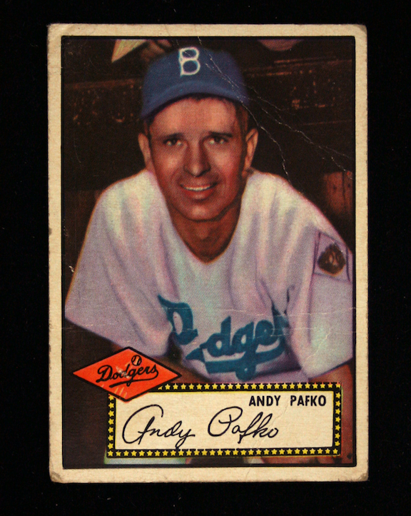 1952 Topps #1 Andy Pafko black back (GD). Exhibits wear to each corner and creasing throuhgout. Clean front and back: GD