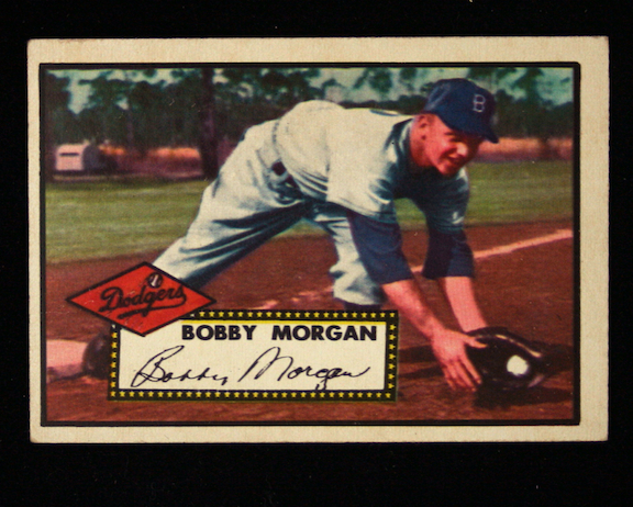 Description:1952 Topps #355 Bobby Morgan (VG-VG/EX). Exhibits light even corner wear and has a very small light crease on the left side. Clean front and back: VG-VG/EX