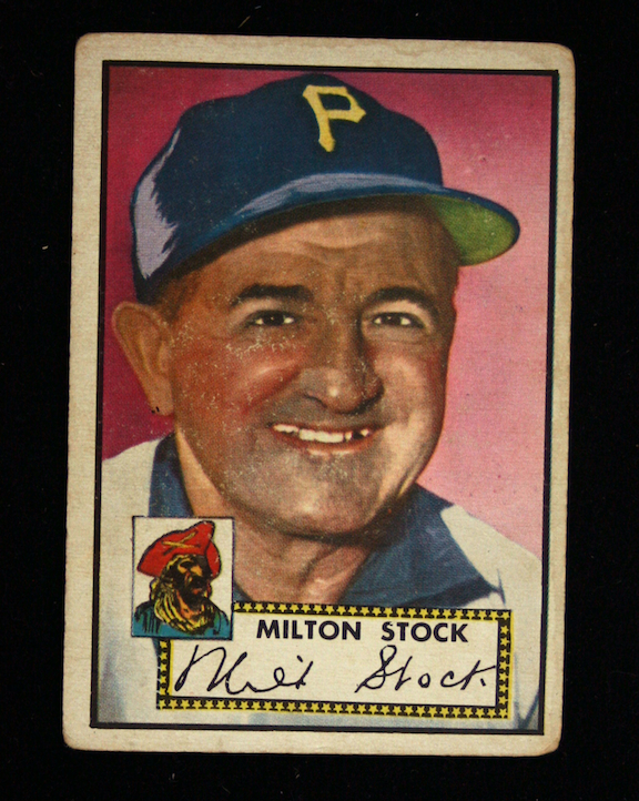 1952 Topps #381 Milton Stock (VG). Exhibits evenly rounded corners and light edge wear. Overall clean front and back: VG
