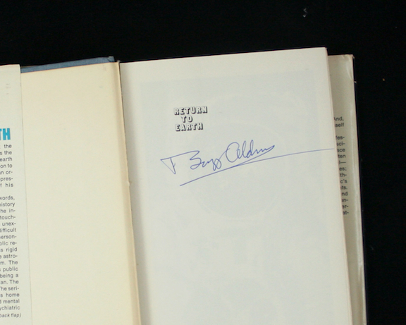 Description:Buzz Aldrin signed 1973 "Return To Earth" hardcover book JSA. (VG-VG/EX) Aldrin signed the half title page in blue ink. Signature rates 9/10 out of 10. Comes with COA from JSA (serial #ed sticker is affixed). Exhibits moderate dustjacket wear, with loose binding along inner spine. Pages are still intact: VG-VG/EX