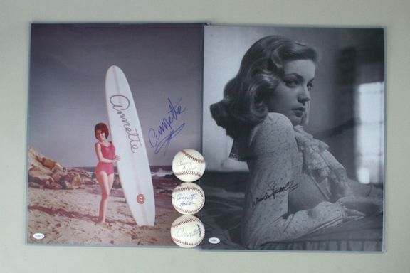 Description:Lot of (5) Actress signed items JSA. (EX-NM) Incl. 16"x20" photo signed by Lauren Bacall in black marker; 16"x20" photo (corner/edge wear) signed by Annette Funicello in blue marker; B.Selig ML baseball signed by Annette Funicello in black ink; B.Selig ML baseball signed by Annette Holt (Funicello's married name) in blue ink; and B.Selig ML baseball signed by Olympia Dukakis in black ink. Signatures rate 8 to 9/10 out of 10. JSA serial #ed sticker is affixed to each item: EX-NM