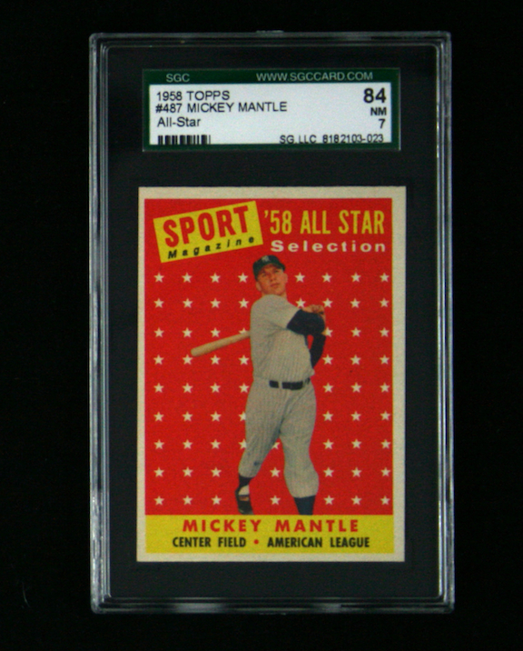 1958 Topps Mickey Mantle baseball card SGC 84. (NM) Card #487 from the All-Star portion of the 1958 Topps set. Graded SGC 84: NM
