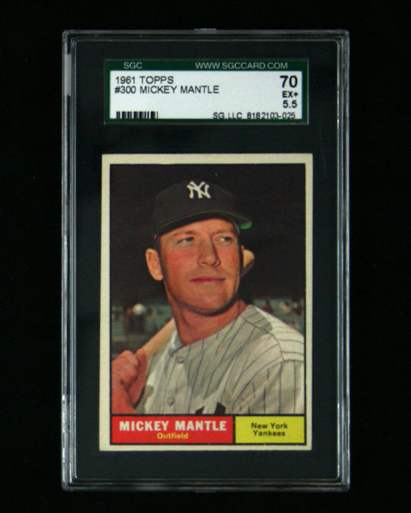 1961 Topps Mickey Mantle baseball card SGC 70. (EX+) Card #300 from the 1961 Topps set. Exhibits very slight fuzzing of the corners. Graded SGC 70: EX+