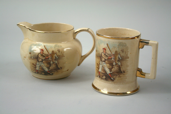 Description:Lot of (2) Arthurwood ôSporting Seriesö earthenware pieces, c.1930s-40s. (VG-EX) Incl. 4.5" tall pitcher featuring a baseball scene on both sides (EX); and 4.5" tall mug featuring a baseball scene on both sides (VG). Arthurwood marking is on underside of both pieces along with Sporting Series markings. Range: VG-EX
