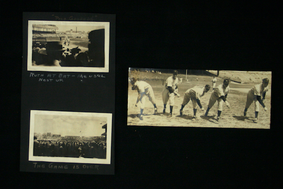 Description:Lot of (3) vintage New York Yankees photographs, with Babe Ruth, c.1920s-1938. (VG/EX-EX) Incl. (2) c. early 1920s 2.75"x4.5" snapshot photos, (1) depicts Babe Ruth batting in the distance with Bob Meusel on deck, and (1) depicts the crowd walking on the Polo Grounds after the game is over (VG/EX appearance, with both affixed to black construction paper); and 3"x8" 1938 press photo depicting (5) Yankees pitchers including Lefty Gomez, Red Ruffing, Ferrell, Pearson, and Hadley (EX appearance, but likely trimmed, Spanish caption is affixed on back). Range: VG/EX-EX