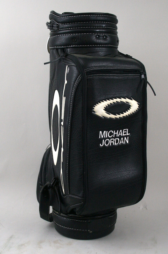 Description:Michael Jordan personal Oakley golf bag. (EX) Oakley black colored golf bag with white trim. "MICHAEL JORDAN" is embroidered in white on the front pocket under the Oakley logo. (2) Ko Olina bag tags from Oahu, Hawaii are attached to the bag. Bag exhibits moderate usage wear including light surface scratching and scuff marks. The offered golf bag originated from the personal collection of Michael Jordan and includes COA from Upper Deck Authenticated: EX