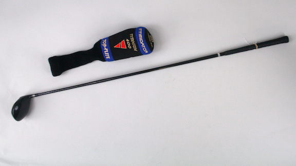 Description:Michael Jordan personal Top Flight Intimidator driver golf club. (EX) Top Flight Intimidator Titanium 400 driver, with Top Flight Golf Pride Tour Velvet Wrap grip, and Top Flight Muscle shaft by Fenwick. Comes with matching Top Flight Intimidator club head cover. The offered golf club originated from the personal collection of Michael Jordan and includes COA from Upper Deck Authenticated. Exhibits moderate usage wear with soil residue present: EX