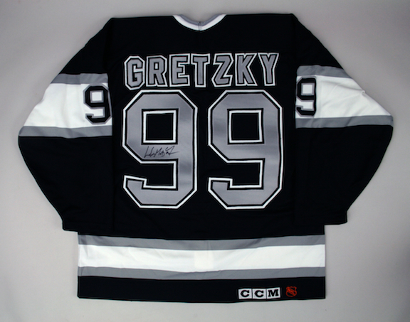 Description:Wayne Gretzky signed Los Angeles Kings jersey (NM). CCM Center Ice Authentic Collection size 52 Wayne Gretzky jersey. Gretzky signed the first "9" on the back in black marker. Signature rates 9 out of 10. Jersey appears unworn and exhibits minimal wear: NM