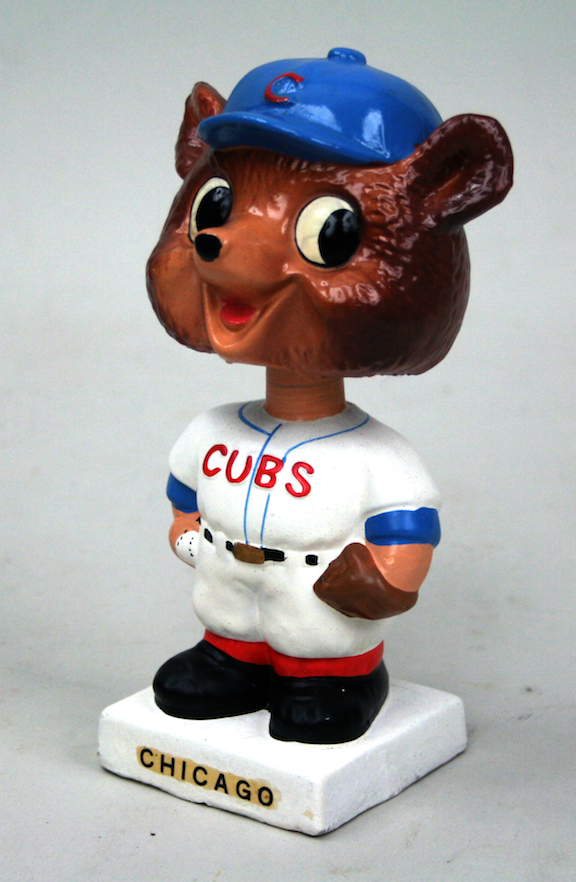 Description:High grade Chicago Cubs mascot bobble head c.1961-63 (NM/MT). White square based nodder which remains in like new condition. Retains great original color and surface gloss: NM/MT