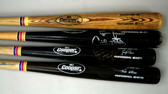 Description:**UPDATED** The minimum bid/reserve on this lot has been amended to $200. Cecil Fielder, Matt Williams, George Bell, and Jose Cruz professional model baseball bats c.1980s-1990s (EX-EX/MT).Includes: 1990s Cecil Fielder 35" Cooper Pro 100 Professional 271 model bat with "45" written in black marker on the knob end. Bat exhibits scattered surface wear with surface loss evident at the end of the barrel. Fielder signed the bat in silver sharpie and personalized it "Chili - All the best, your friend". Signature rates 8 out of 10. 1990s Matt Williams 35" Cooper Pro 100 Professional M110 model bat exhibiting moderate usage wear including multiple ball marks. Williams signed the handle in blue sharpie. Signature rates 8 out of 10; 1993 George Bell 35" Cooper Pro 100 Professional C271 model bat with "21" written in black marker on the knob end. Bat exhibits scattered surface wear. Bell signed the bat in gold sharpie and personalized it "To Chili" with a Spanish inscription and "21/9/93" date notation. Signature rates 8/9 out of 10; and a 1980s Jose Cruz 34" Cooper Pro 100 Professional P72 model bat with "25" written in black marker on both ends. Bat exhibits minimal wear with a few black surface marks. Includes a Letter of Provenance signed by Chili Davis stating that this lot originated from his personal collection: EX-EX/MT