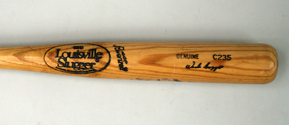 Description:1990 Wade Boggs professional model baseball bat (EX).34" Louisville Slugger C235 model bat with "26" written in black marker on the knob end. Bat exhibits moderate to heavy usage wear including multiple ball marks and pine tar on the handle: EX