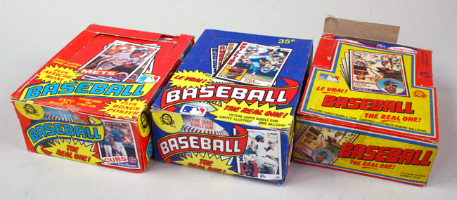 1983, 1984, and 1985 O-Pee-Chee Baseball unopened wax boxes (EX/MT). Each box contains (36) unopened packs. Packs exhibit minimal wear. Boxes exhibit handling wear: EX/MT