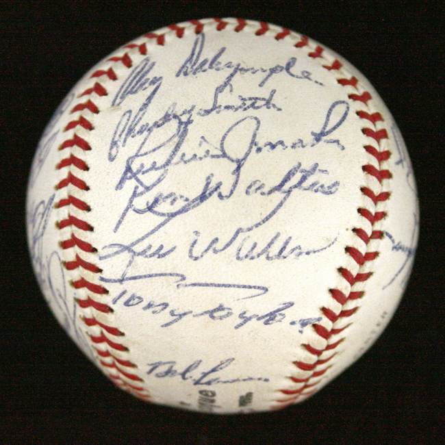 Description:1961 Philadelphia Phillies team signed baseball (EX/MT). W.Giles NL ball signed by (23) members of the 1961 Phillies including Bob Lemon, P-Nuts Lowrey, Al Vincent, Robin Roberts, Clay Dalrymple, Pancho Herrera, Dallas Green, Tony Taylor, Ruben Amaro, Charley Smith, Johnny Callison, Tony Gonzalez, Ken Walters, Lee Walls, John Buzhardt, Don Ferrarese, and others. Signatures rate 6/7 to 9 (avg 7/8) out of 10: EX/MT