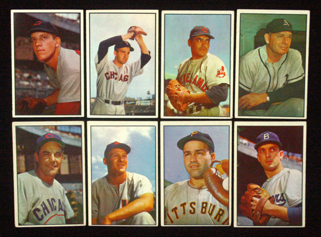 Lot of (47) different 1953 Bowman Color baseball cards (VG/EX overall). Includes #s 5, 6, 7, 11 Shantz (GD), 12 Erskine (VG/EX), 13, 15, 19, 21 Garagiola (VG/EX), 22, 23, 24 Jensen (EX (OC)), 25, 26, 29 Avila (GD), 30 Cavarreta (VG), 31 Dykes (EX), 34, 41, 42, 43 Garcia (VG/EX), 49 Stanky (EX (OC)), 53, 54, 66, 67, 70, 71, 73 Pierce (Ex), 74, 76, 77, 79 Boone (PR/GD), 85, 86, 88, 89, 90 Nuxhall (EX-EX/MT), 91, 94, 95, 96 Maglie (GD), 104 Easter (VG), 107, 110, 111, and 112. Most grade VG/EX. Range PR/GD-EX/MT